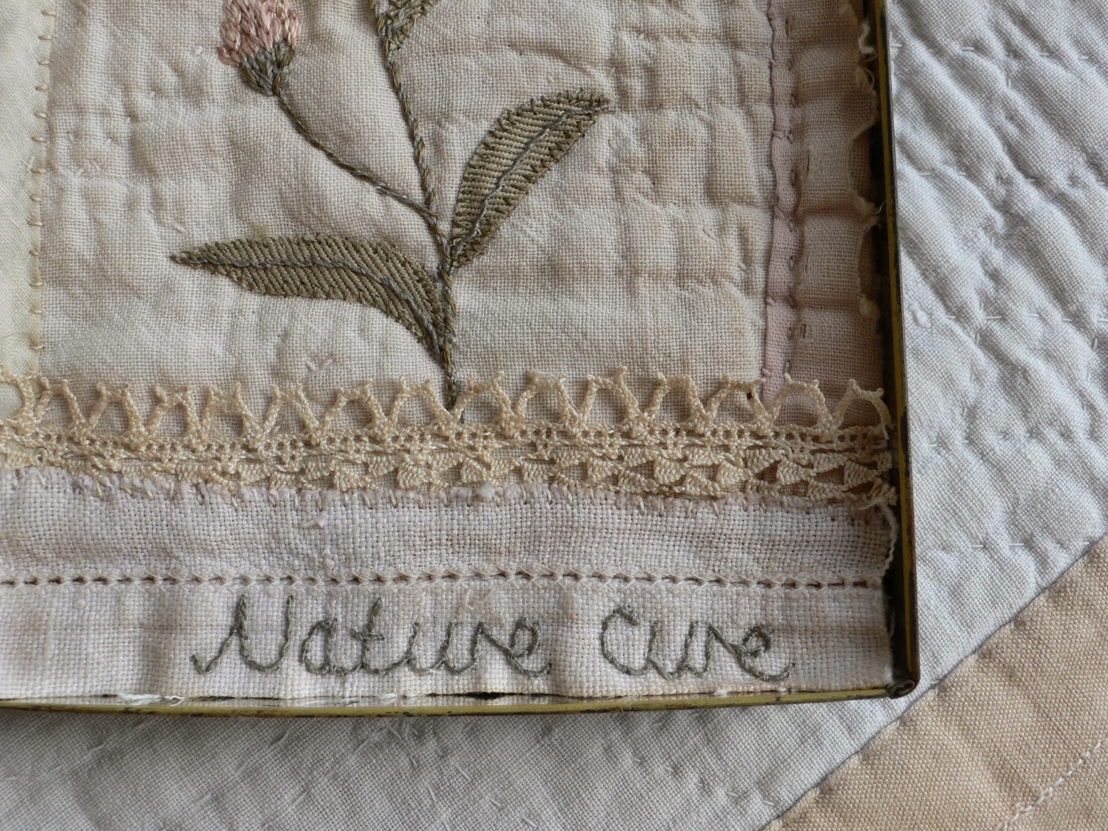 I made these little fabric tokens for myself several years ago now. They were a source of comfort at a difficult time. The one in the middle is made from a tiny vintage collar and the other two are epaulettes from an old shirt, which of course, being me, I couldn't throw away. Words are very powerful, they can hurt, they can comfort and inspire and remind you of things that are important. Lots of people collect words, they may keep a notebook of phrases or quotes that mean something to them or nowadays most people will have a Pinterest board full of inspiring words. I like to stitch words that are important to me.